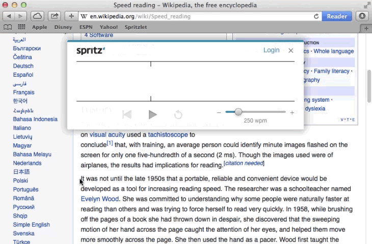 Update 2018: Spritz Inc now reports that since its launch: '...Spritz has been covered by hundreds of publications across the globe and adopted by leading publishers and brands to engage with millions of their users. Available on desktops, smartphones and wearables, the technology is currently supported in more than 20 languages and used in over 50 countries.'